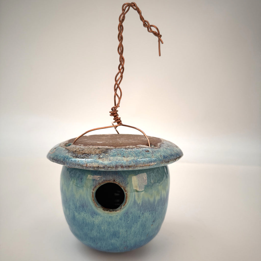 Blue Ceramic Birdhouse